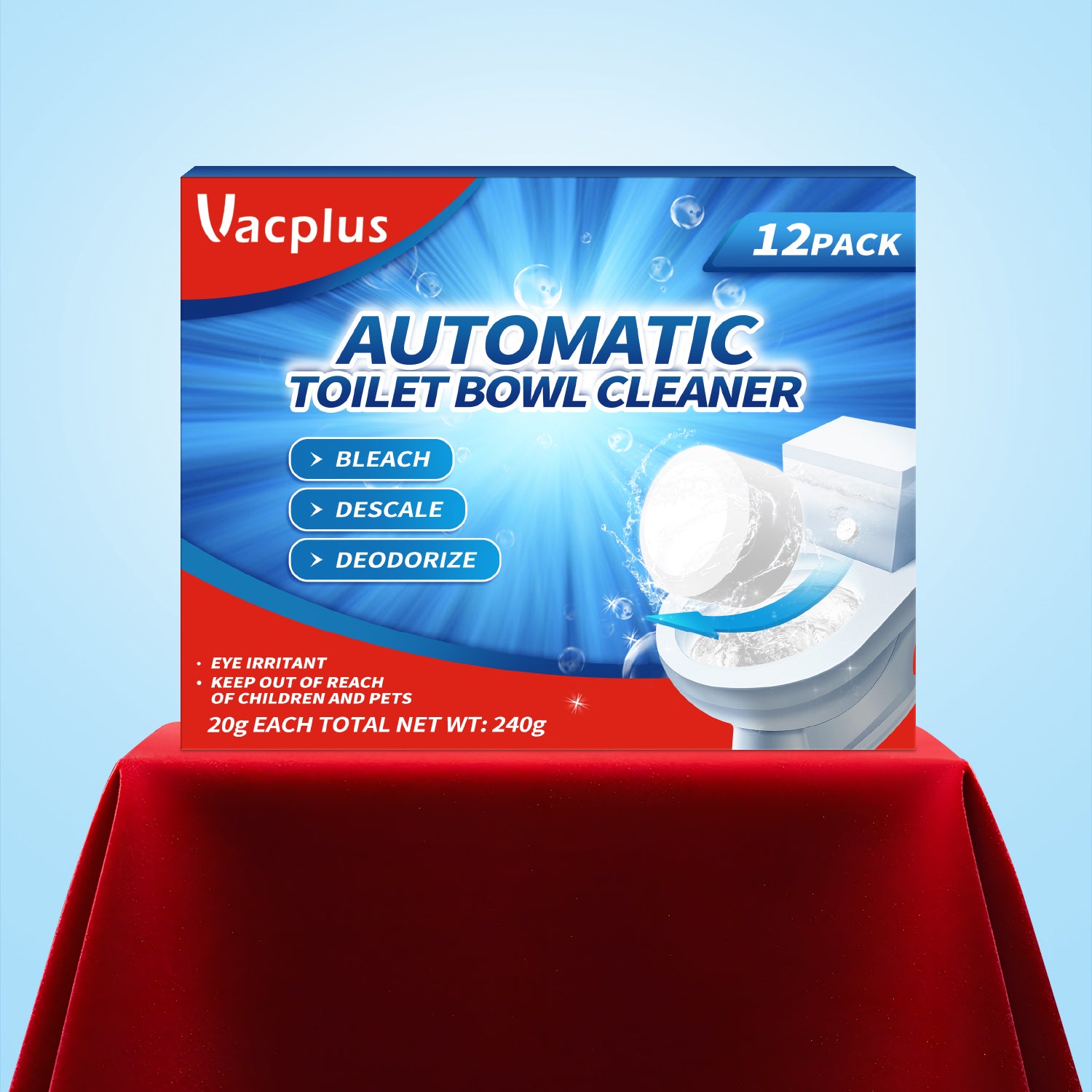 Vacplus 6-pack toilet tank cleaners are specifically formulated to effectively descale your toilet tank, removing stubborn mineral deposits and limescale buildup. They help restore the proper flow of water and prevent clogs, ensuring optimal toilet performance.